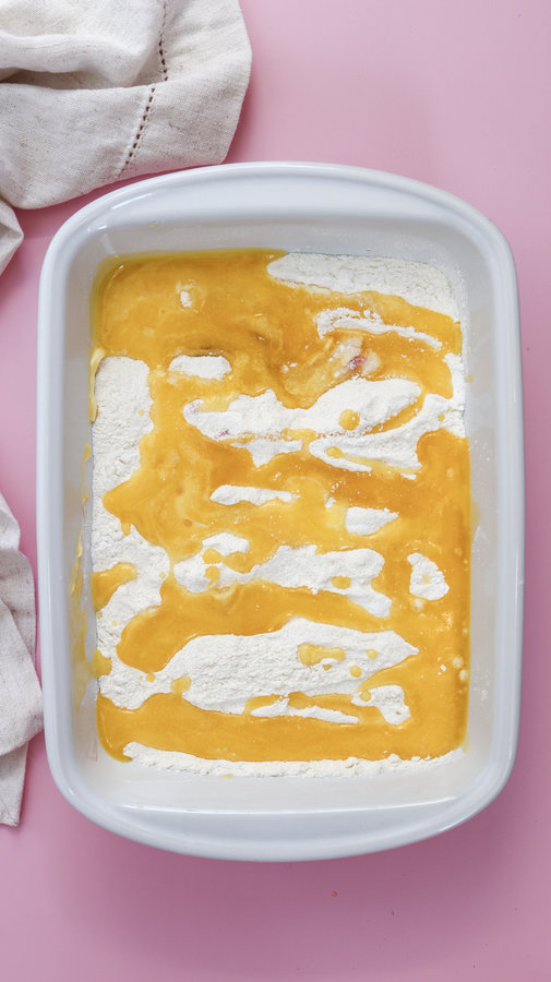 Grease up a 9×13-inch pan. I just use butter or cooking spray, whatever’s easier.