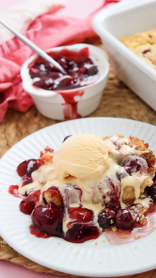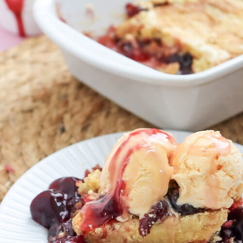This specific cherry dump cake recipe is perfect for any occasion – I’ve had people rave about this cake at potlucks, summer barbecues, plus it’s often my go-to those nights when I need dessert fast. The sweet-tart cherries paired with the golden, buttery cake topping is absolutely irresistible. Serve it warm with a scoop of vanilla ice cream and watch it disappear!