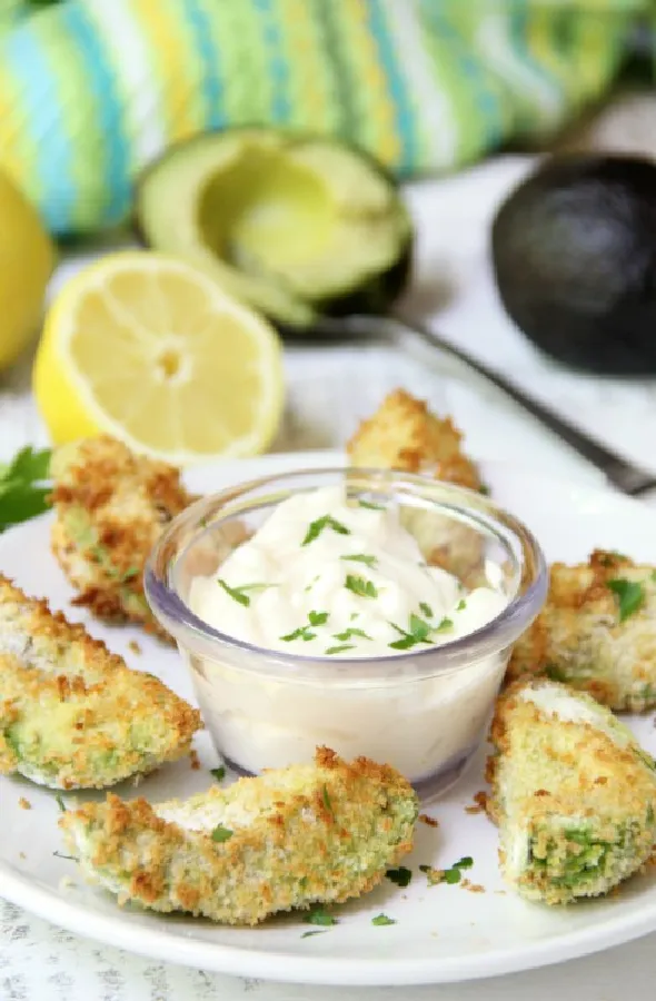 Air Fryer Avocado Wedges with Garlic Aioli Dipping Sauce