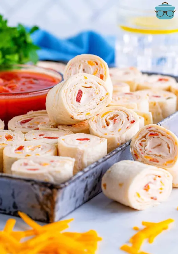 These Fiesta Pinwheels are so delicious and simple to make! Rolled up with flour tortillas, cream cheese, salsa, sour cream, and of course plenty of shredded cheese, they’re the perfect make-ahead party appetizer. Slice them up, arrange on a platter, and watch them vanish in minutes.