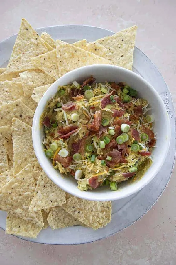 This Loaded Avocado Dip is a flavor-packed, ten-minute appetizer that is absolutely perfect for game day or Cinco de Mayo. This creamy dip combines avocado, cream cheese, spices, crispy bacon, and cheese for something way beyond your average guacamole. One bite and you’ll be hooked.