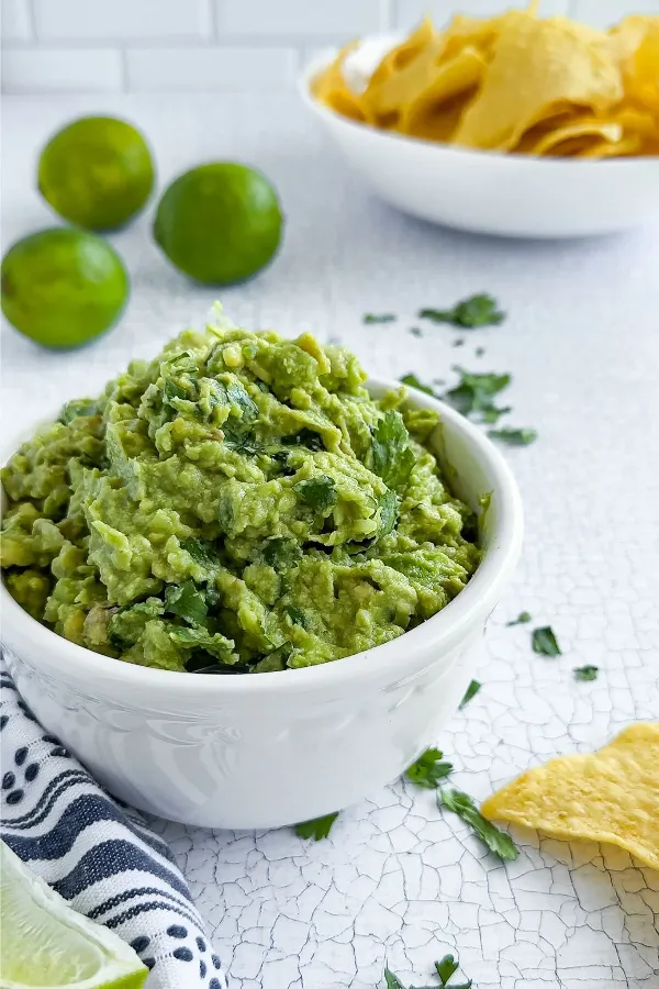 This Cilantro Lime Guacamole is full of delicious, fresh flavor! Made with cilantro, lime, garlic, and a bit of onion, it’s simple, vibrant, and guaranteed to be a hit at your next party. Serve it up with a big bowl of tortilla chips and watch it disappear.