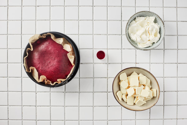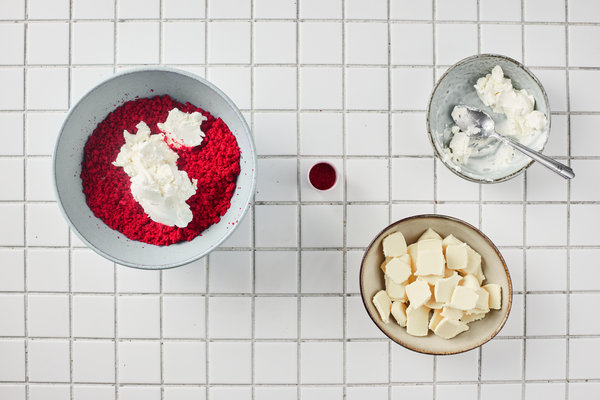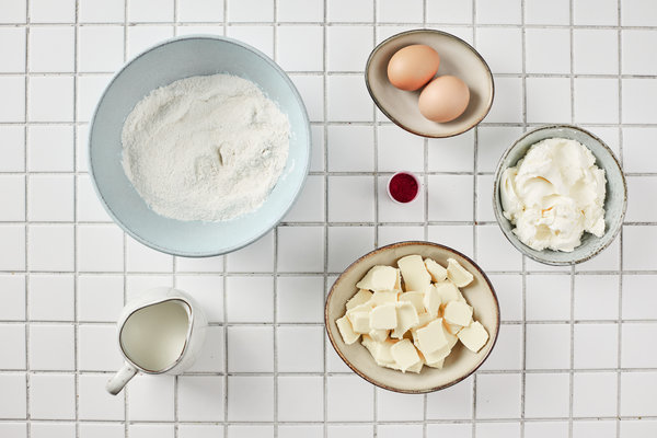 - 1 box red velvet cake mix plus eggs and milk — grammage according to the instructions on the package
