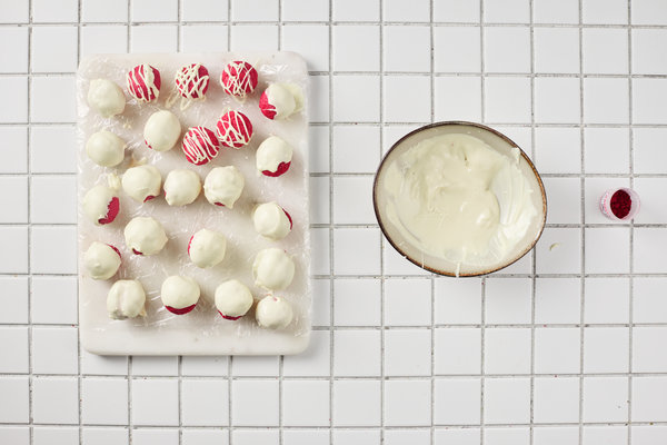 The white chocolate coating makes them seem extra fancy. But really – you’re just rolling cake and frosting into balls – couldn’t be easier.
