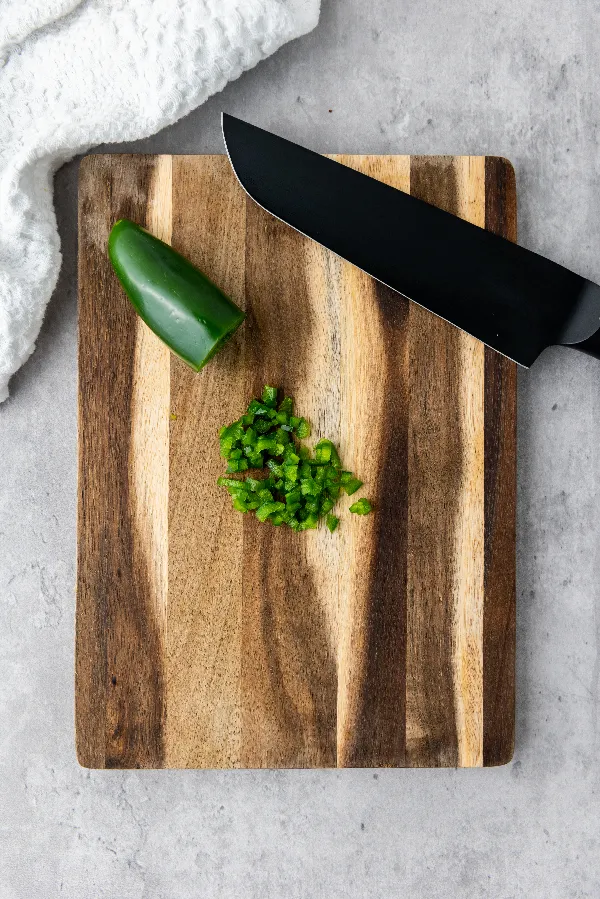I just chop the whole thing up. Take the seeds out if you do not like too much heat, that is where the spice mostly comes from. Leave them in if you want it hot!