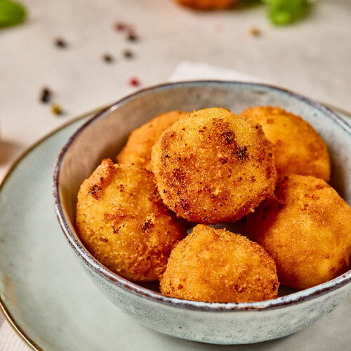 • Heat oil to 350°F (175°C). Fry bites in batches for 2–3 minutes, until golden brown. Drain on paper towels.