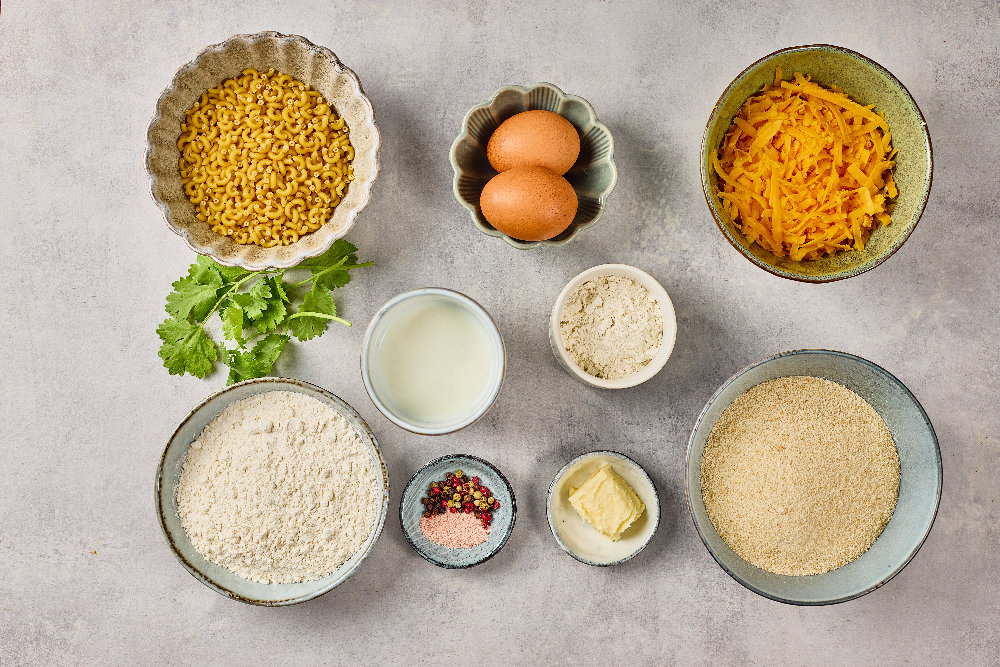 • Scoop and roll chilled mac and cheese mixture into 1.5-inch (4 cm) balls.