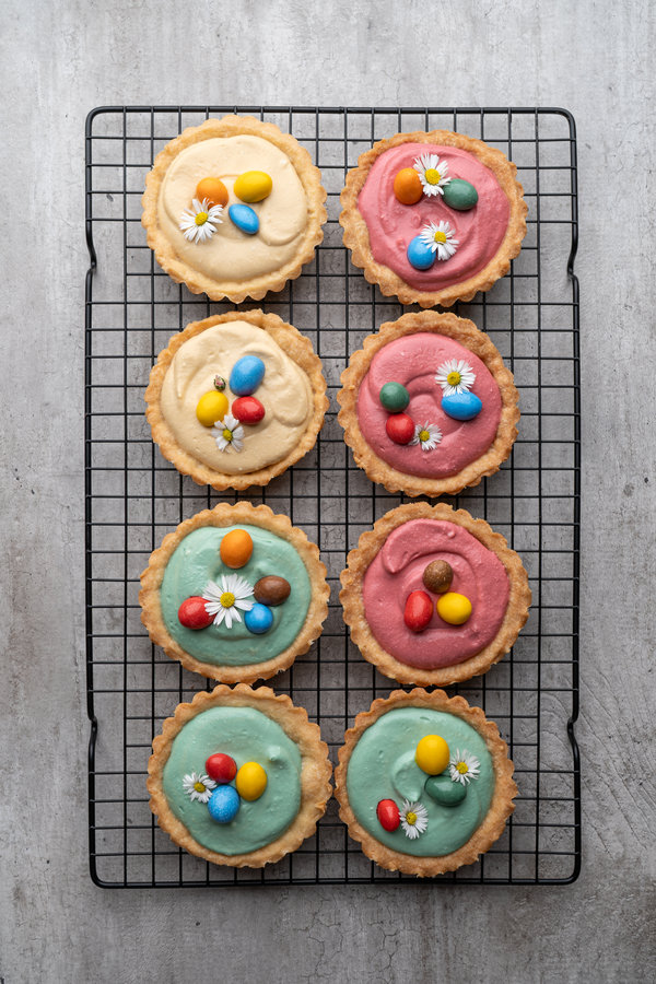 • Just before serving, top each tart with a few mini chocolate eggs or edible flowers for a cheerful Easter touch.