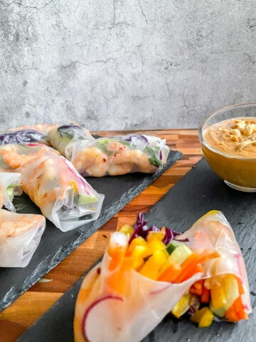 These shrimp spring rolls are made with a bunch of vegetables and marinated shrimp. aka the best part of Vietnamese Spring rolls