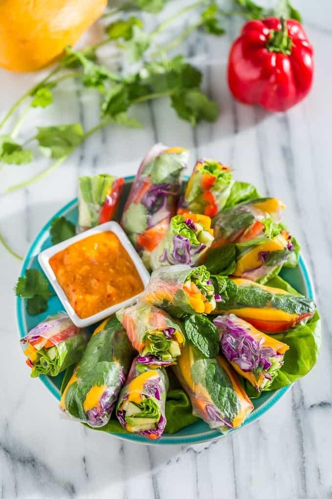 Rainbow Spring Rolls with Sweet Chili Mango Sauce
