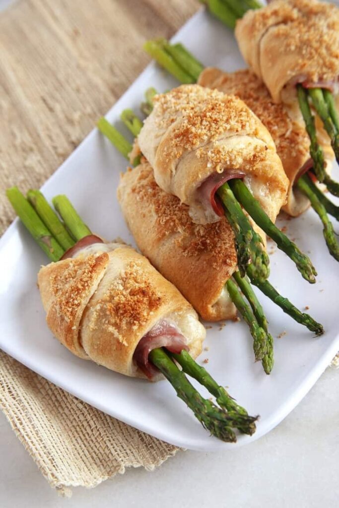 These Ham and Cheese Crescent Rolls with Asparagus are the perfect Spring Appetizer, and they’re so easy to make. Made with refrigerated crescent roll dough, these little bundles of melty cheese, sliced ham.