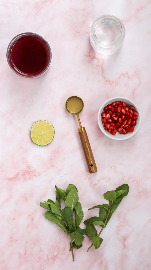 It takes 5 minutes to make, so it’s super easy, plus you might already have most of the ingredient stuff. The pomegranate seeds make it look really pretty which shouldn’t matter but totally does! Especially if you’re making this for guests, serving it at a party, etc. Tastes tart and fizzy and feels really ‘professional’ if that makes sense, even though it’s super simple to do.