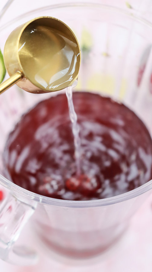 • In a large jug, combine the pomegranate juice and fresh lime juice. Stir gently to mix well.