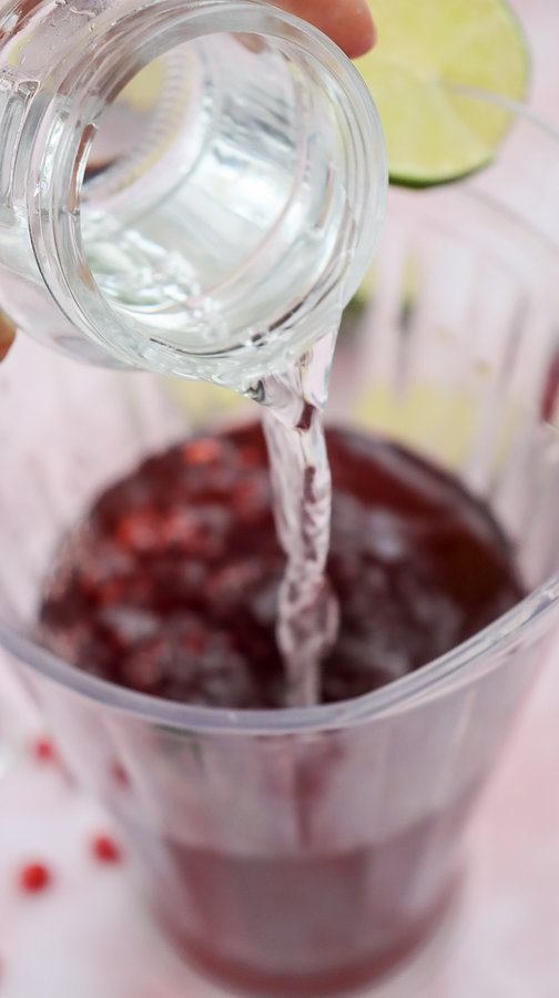 Throw the pomegranate seeds in. The lime slices too. They float around and look so pretty. Plus they make it taste better when you drink it!