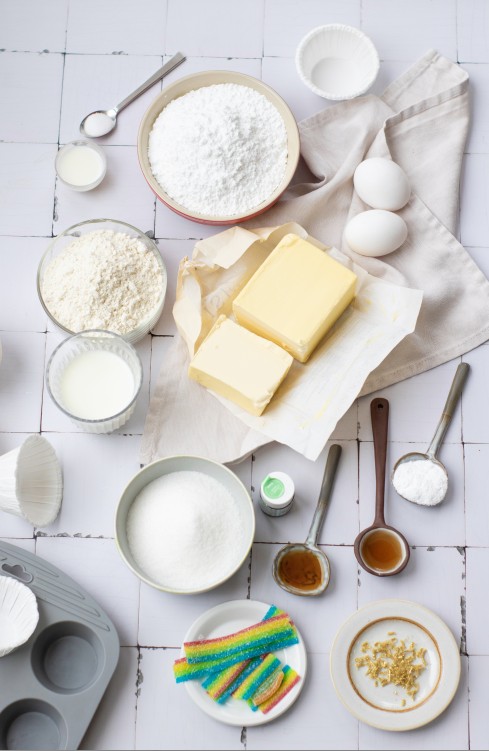 - Edible gold flakes/strips dazzle dust or gold sprinkles (for the ends of the rainbow, optional)