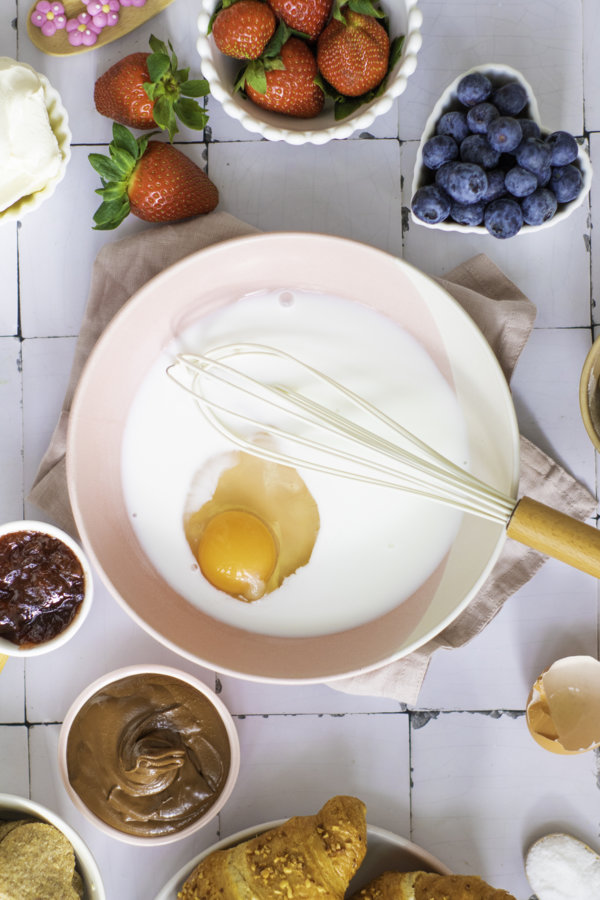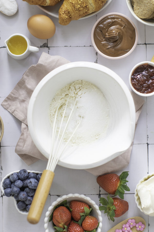 Put berries everywhere around the croissants and waffles. Fill up the empty spots and make it pretty looking! You can’t really mess this up.