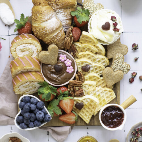 I wanted to share with you a Valentine’s Day breakfast board recipe that I made! It’s for romantic, delicious and it looks really pretty. My partner liked it a lot.