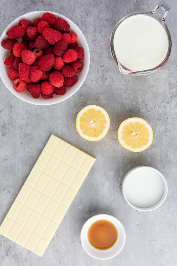 So this dessert is probably easily one of the fanciest-looking things you could ever make, that’s actually not that complicated at all. White chocolate and raspberries together? AMAZING combo!