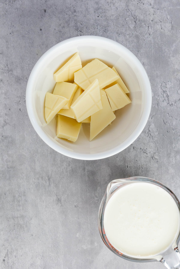 - Melt the white chocolate in a heatproof bowl set in the microwave for about 60 seconds, stirring occasionally. Once melted let it cool slightly.