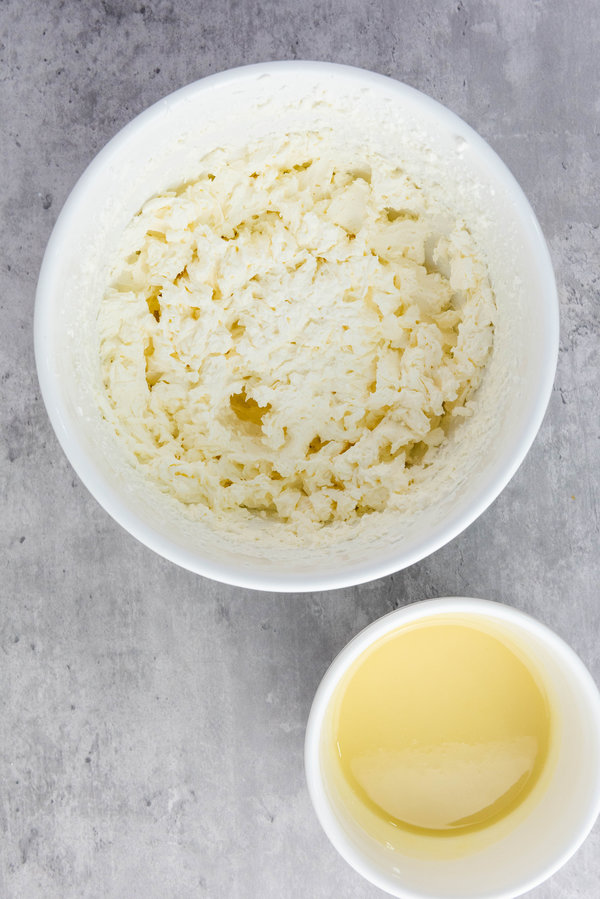 3. Whip the cream: Take a different bowl and put in the heavy cream, vanilla, and sugar. Whip it with a mixer until you see stiff peaks! That’s when the cream stands straight up when you pull the beaters out. Takes a few minutes of whipping. Your arm might get tired if you’re doing it by hand but keep going!